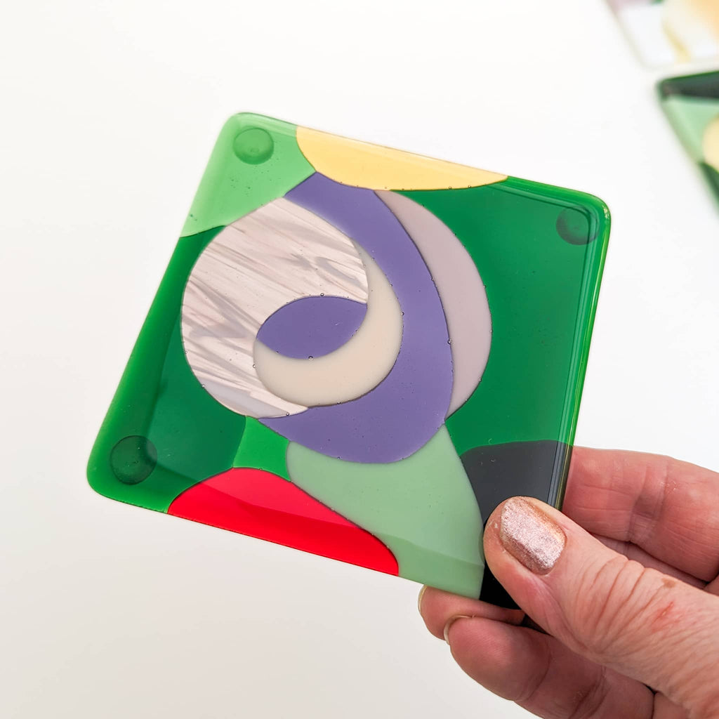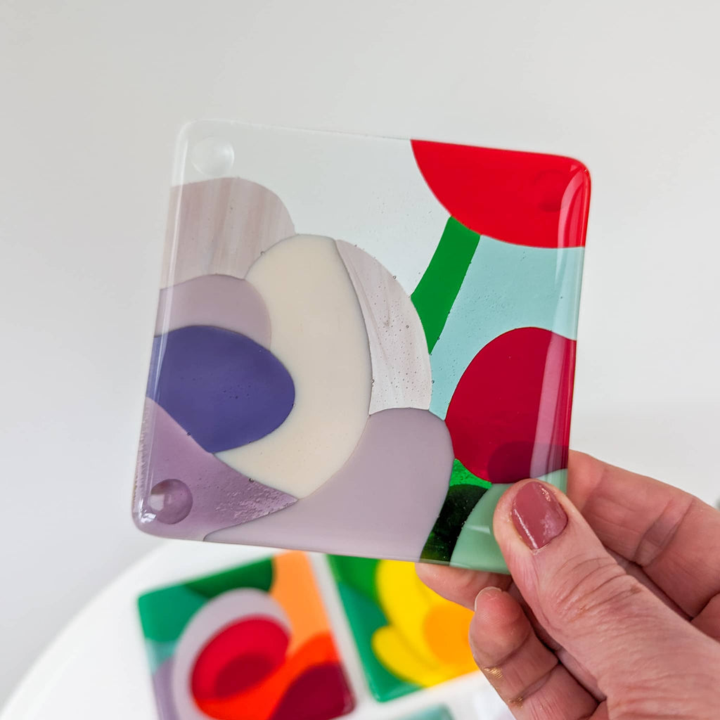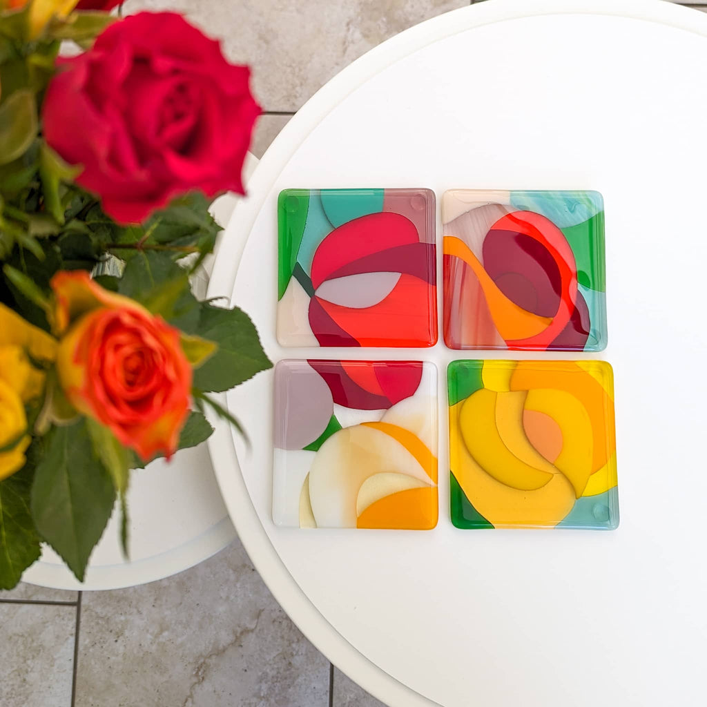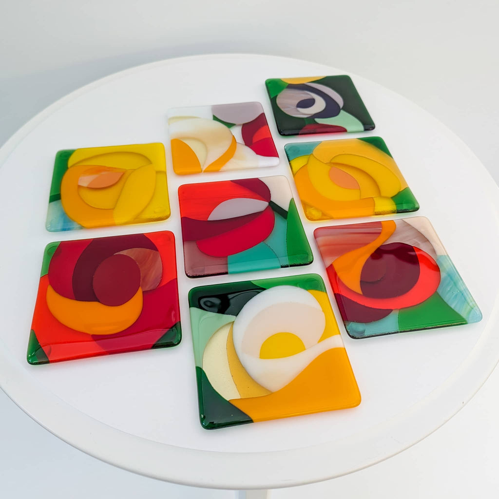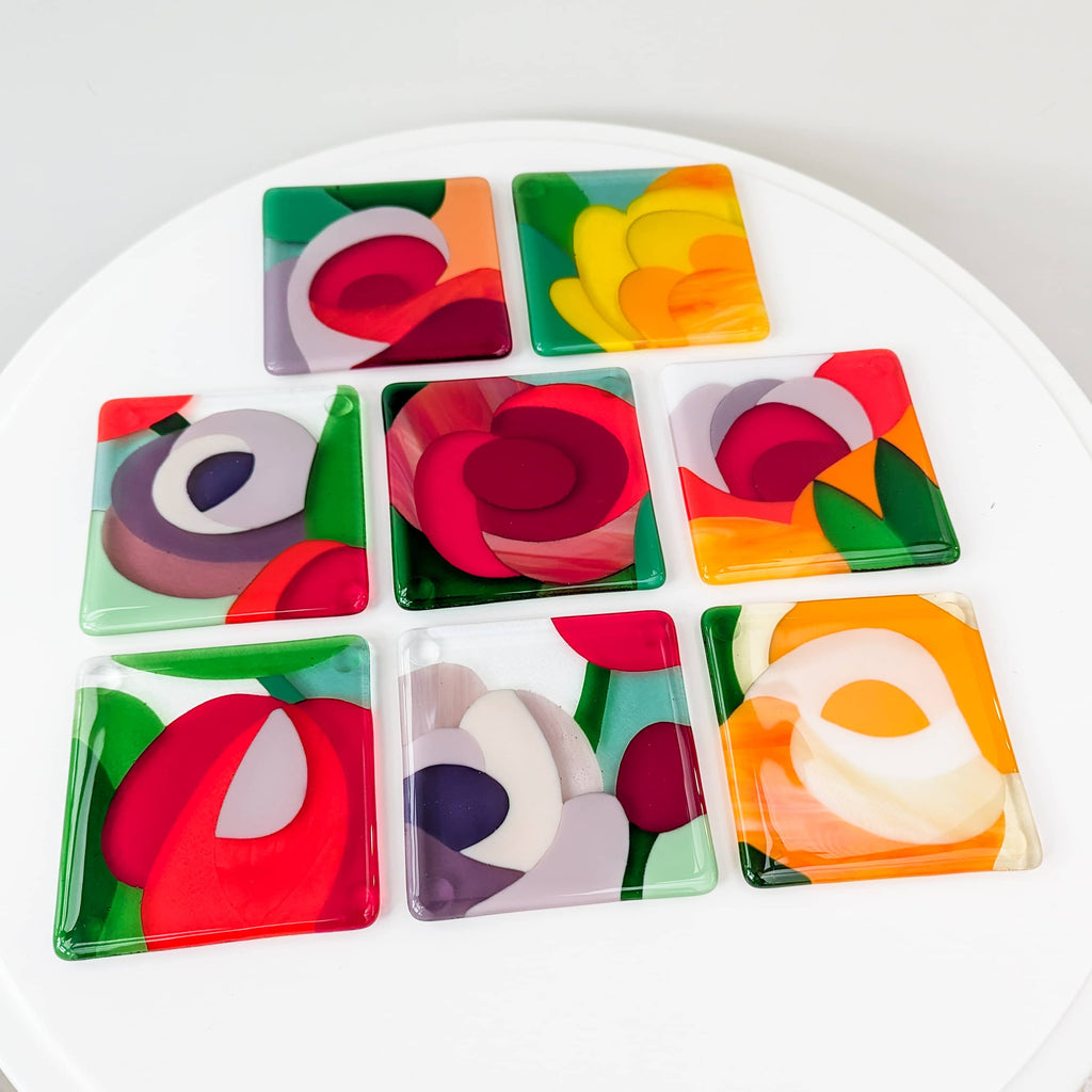 One, or a set of fused Hard Edge glass art Miniatures based on my Floral design.